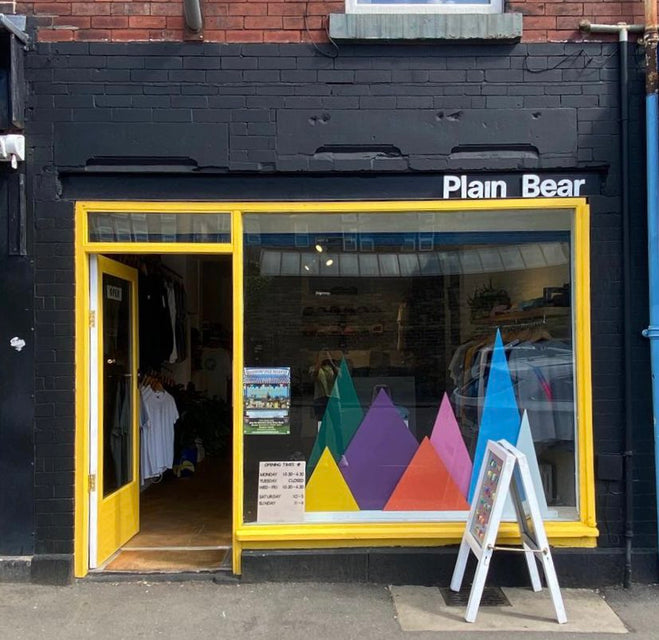 Established in 2013. Cementing our roots as a street brand at the local markets (Greenwich and then Spitalfields), what started out as an excuse to keep any artistic practice alive, Plain Bear has now developed (from its market roots) into a defined brand. With our modern studio based in Sheffield, we silkscreen all our own bold designs and shall be using the rising fluctuation of artistic talent that spoils from the local street. Also now appearing on Sharrow vale road, we have become part of the fabric that creates and defines style
